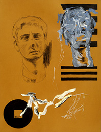 A Memória das Estátuas #3 , 2014 Carvão, giz e acrílico s/papel terra de Siena, 65 x 50 cm |